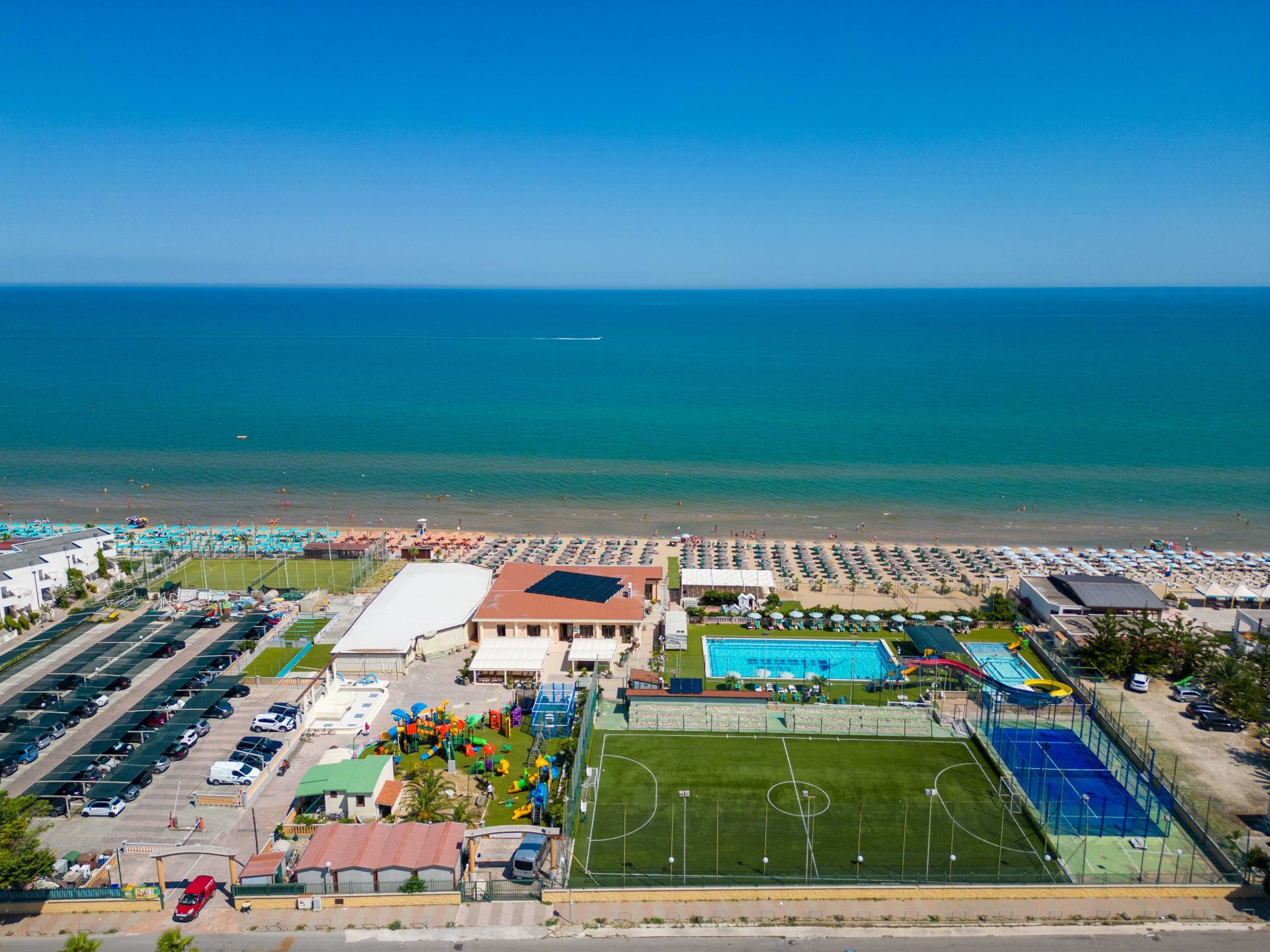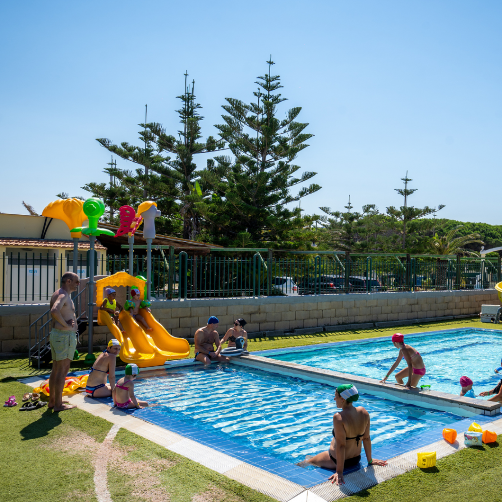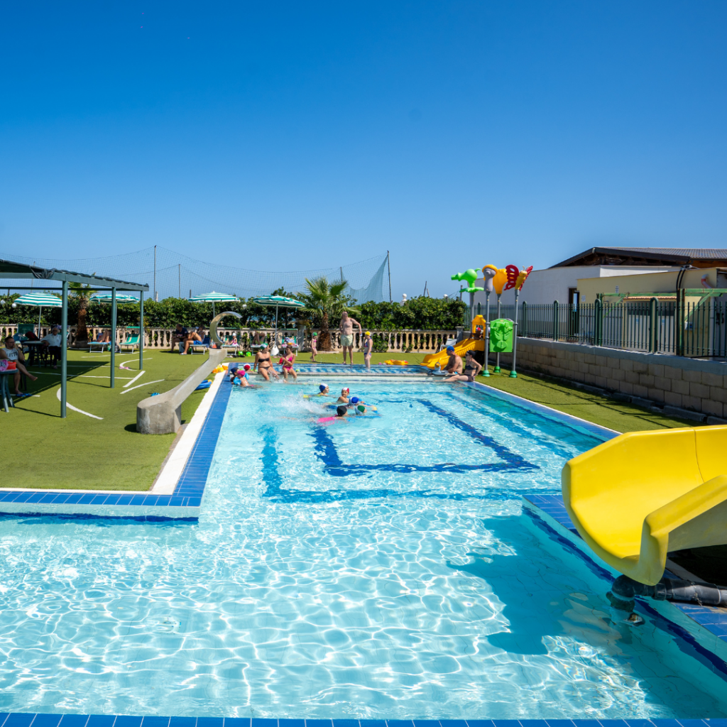 4-10 anni mini club : giochi in spiaggia, in piscina con scivoli e acquascivolo, laboratori pomeridiani, grande parco giochi con altalene, campo multisport da calcetto e basket, Playground e 2 tappeti elastici, corsi introduttivi di tennis e nuoto (Luglio e Agosto), ping-pong, campo da calcetto e campo da tennis in erbetta sintetica (uso diurno su prenotazione)